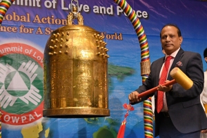 Mr. Salim Uddin, Member of Parliament of Bangladesh, rang the Bell of World Peace and Love, and he wished “peace for all of humanity and the whole world.” “I want to see a peaceful world . . . the only way we can achieve peace in the world is with love and peace.” He stressed that life is short, and we need to strive for a better world for our generation and future generations. He said, “That’s why it’s a very important message to the whole world and all world leaders.” Love and peace are the most important and have to come from the bottom of our hearts, and if all human beings can respect one another, our world will become much better, added Mr. Uddin.